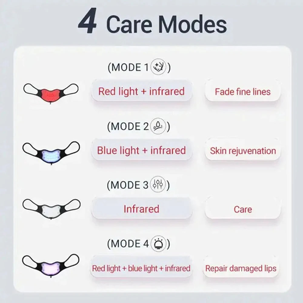Transform your lip care routine with the LED Light Brighten Lip Device, a cutting-edge beauty tool designed to restore lip health, elasticity, and natural rosiness. Featuring four modes of LED light therapy and three adjustable intensity levels, this wearable device repairs lip barriers, smooths wrinkles, brightens color, and promotes collagen regeneration in just three minutes a day.